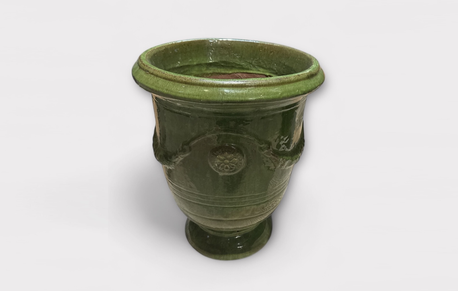 Pot anduze en céramique vert olive brillant D65cm H76cm