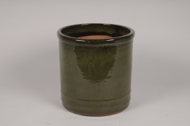 Pot en céramique émaillée vert foncé percé diamètre 32cm hauteur 31cm