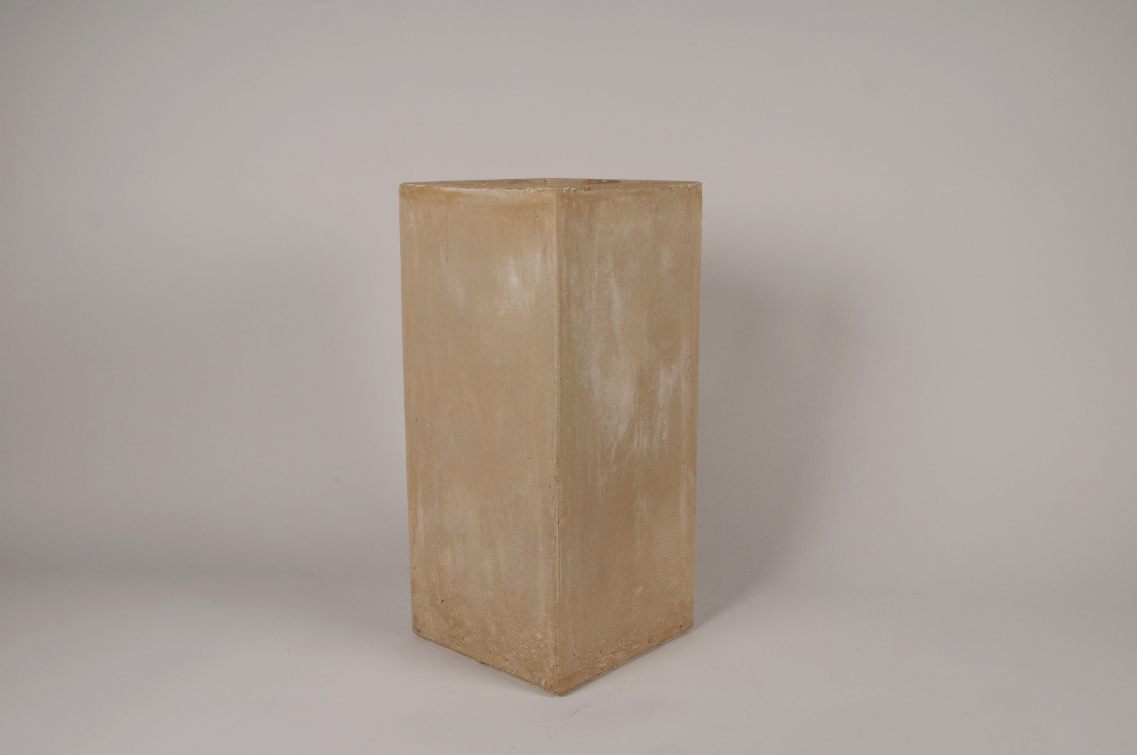 Pot carré haut ou bac en fibre couleur sable percé 27x27cm hauteur 60cm