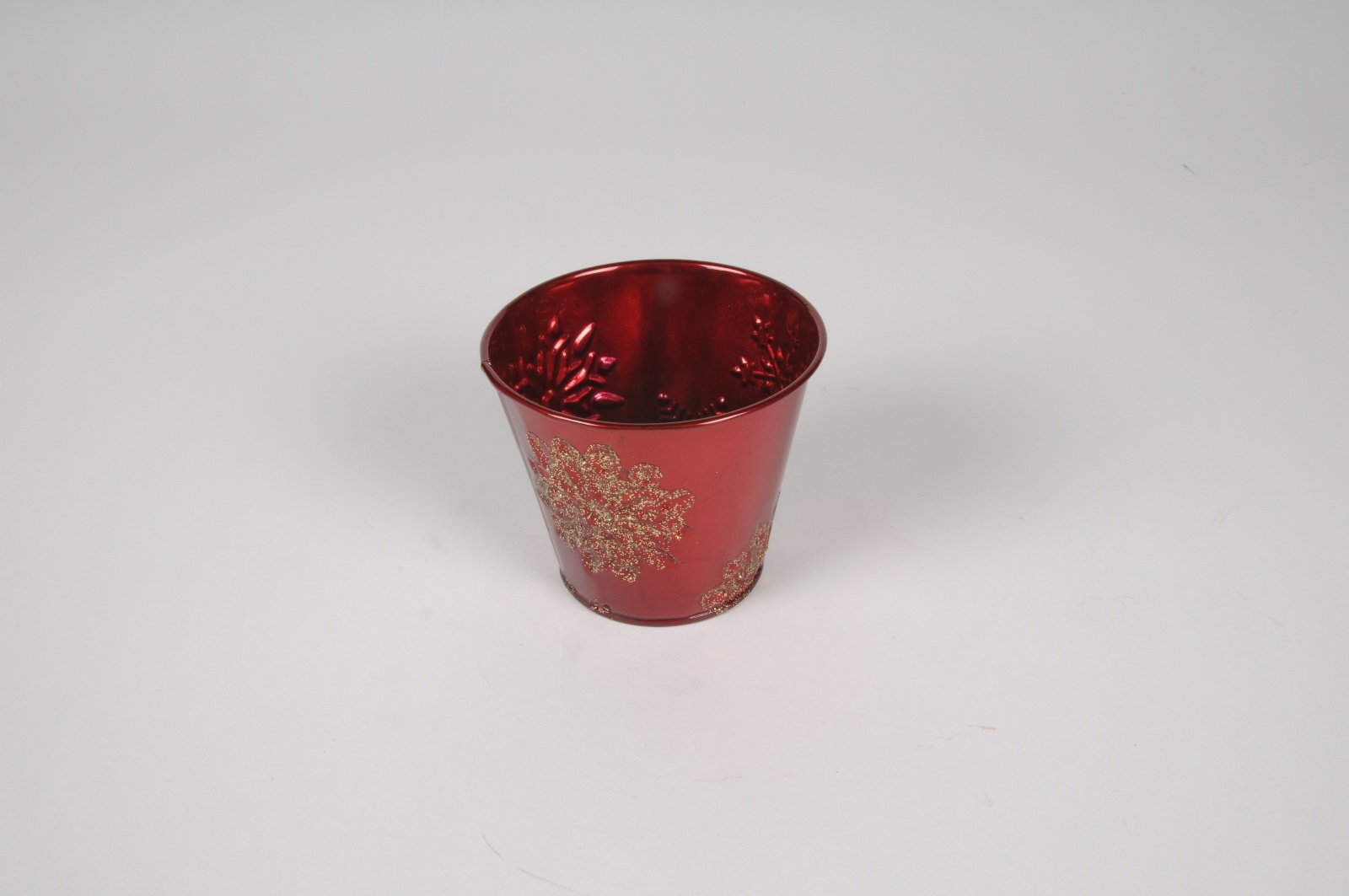 Red zinc planter with gold snowflakes patterns diameter 8.5cm height 8cmBase diameter 6cm