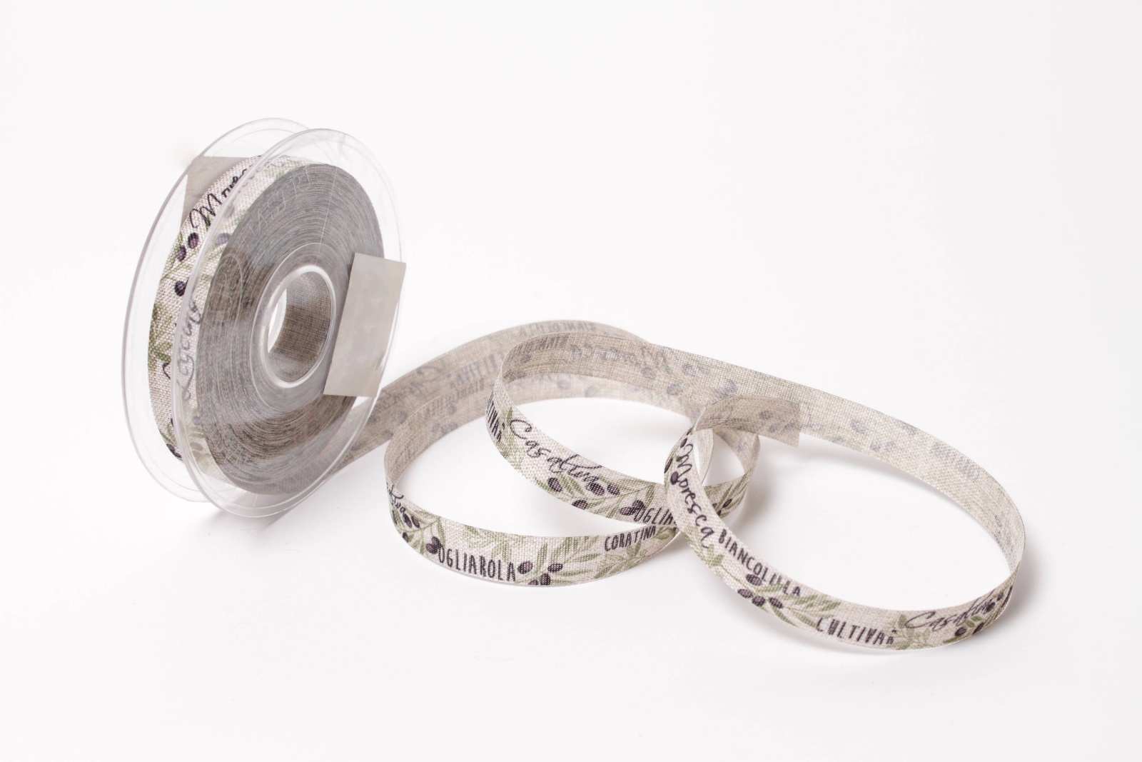 Ruban tissu gris motif olive largeur 15mm longueur 20m