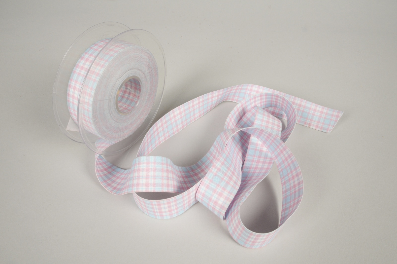 Ruban en tissu à carreaux rose et bleu largeur 25mm longueur 10m