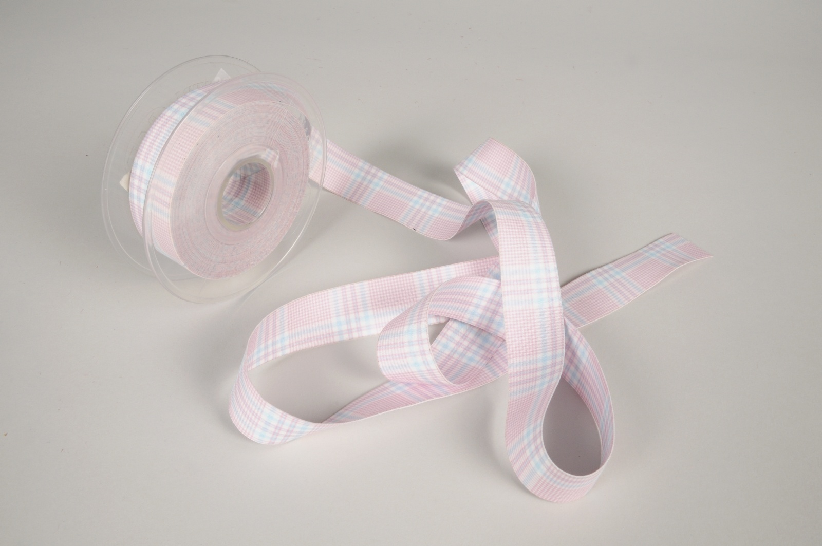 Ruban en tissu à carreaux rose et bleu largeur 25mm longueur 10m