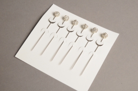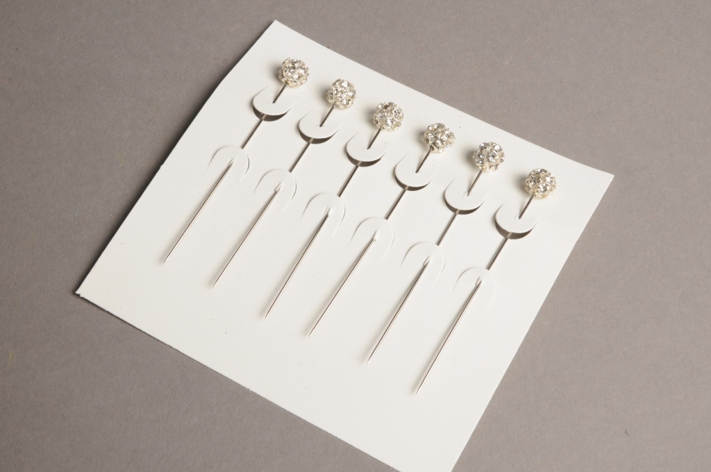 Réf. : J9-000006 Sachet de 6 boules de strass argent sur épingle diamètre 10mm longueur 65mm