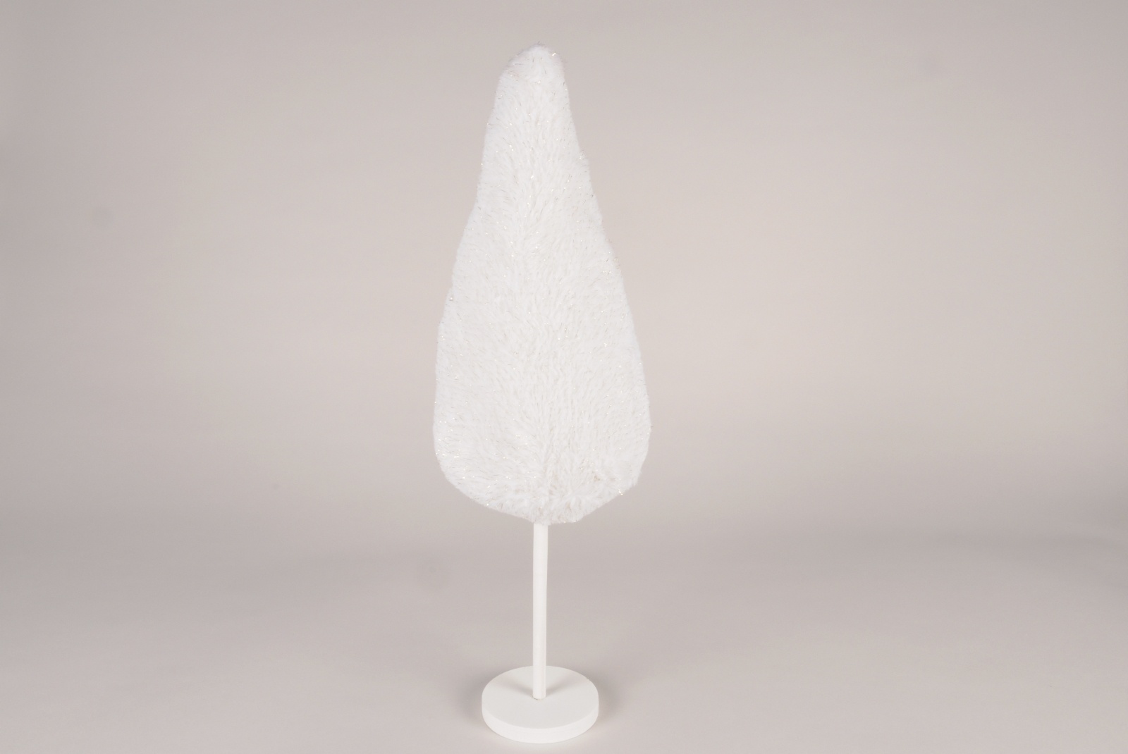 Sapin en fausse fourrure blanche et dorée sur pied en bois hauteur 55cm