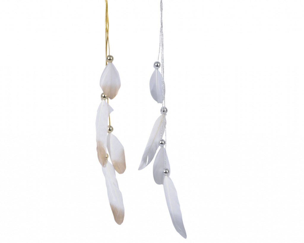 Set of 2 assorted pendant of feather and with pearl height 25cm