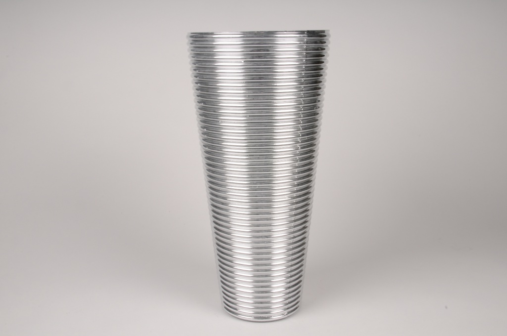 Silver glass vase with striated pattern diameter 25cm hauteur 50cm