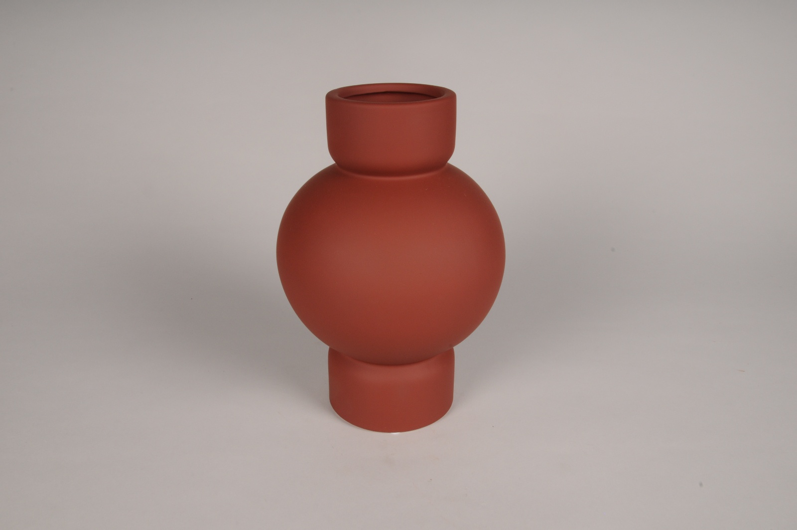 Dark red terracotta matt design ceramic vase a with geometric shape and smooth surface Diameter 17cm height 25cmOpening diameter 7.5cmBase diameter 10cm