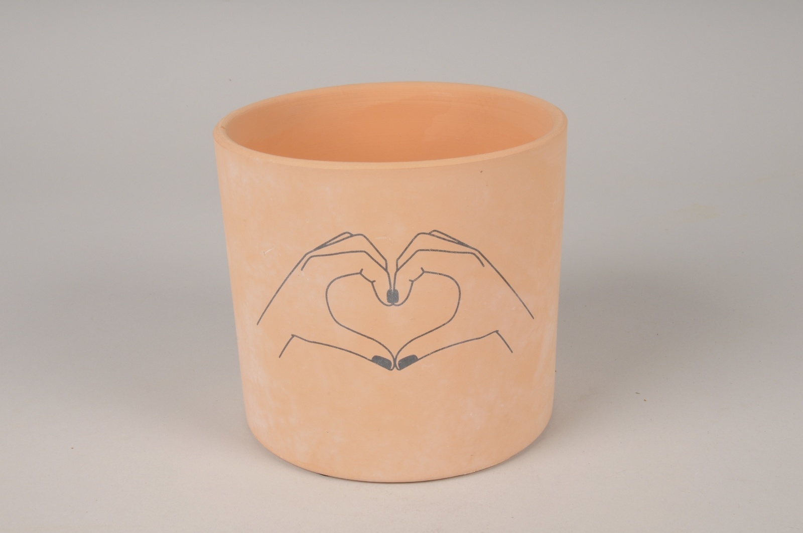 Terracotta pot holder with heart-shaped hands diameter 13.5cm height 12cmInside diameter 12cm