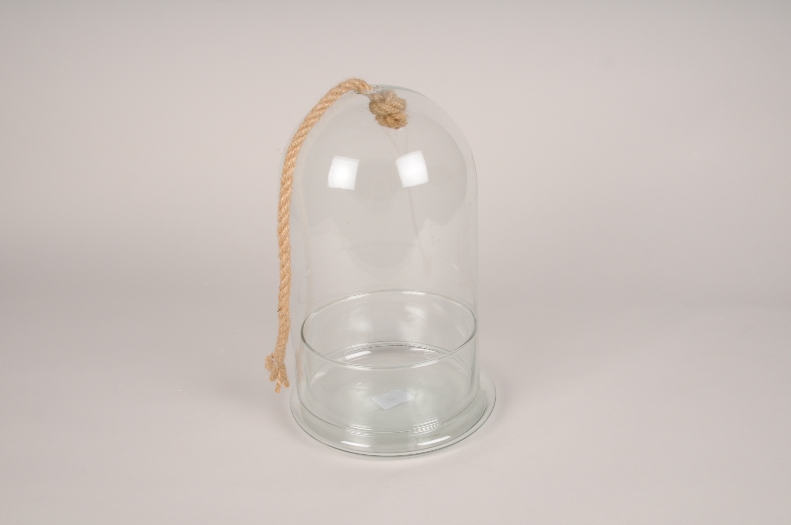 Terrarium ou cloche en verre transparent avec support et corde diamètre 18cm hauteur 28cm