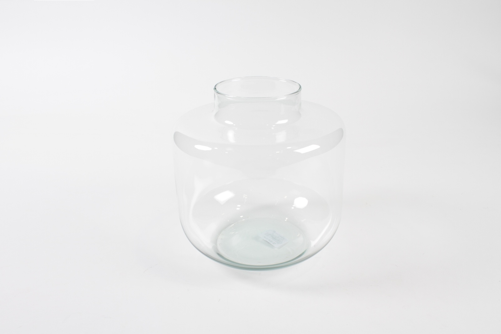 Clear glass obus vase diameter 19cm height 19.5cmOpening diameter 9cm