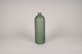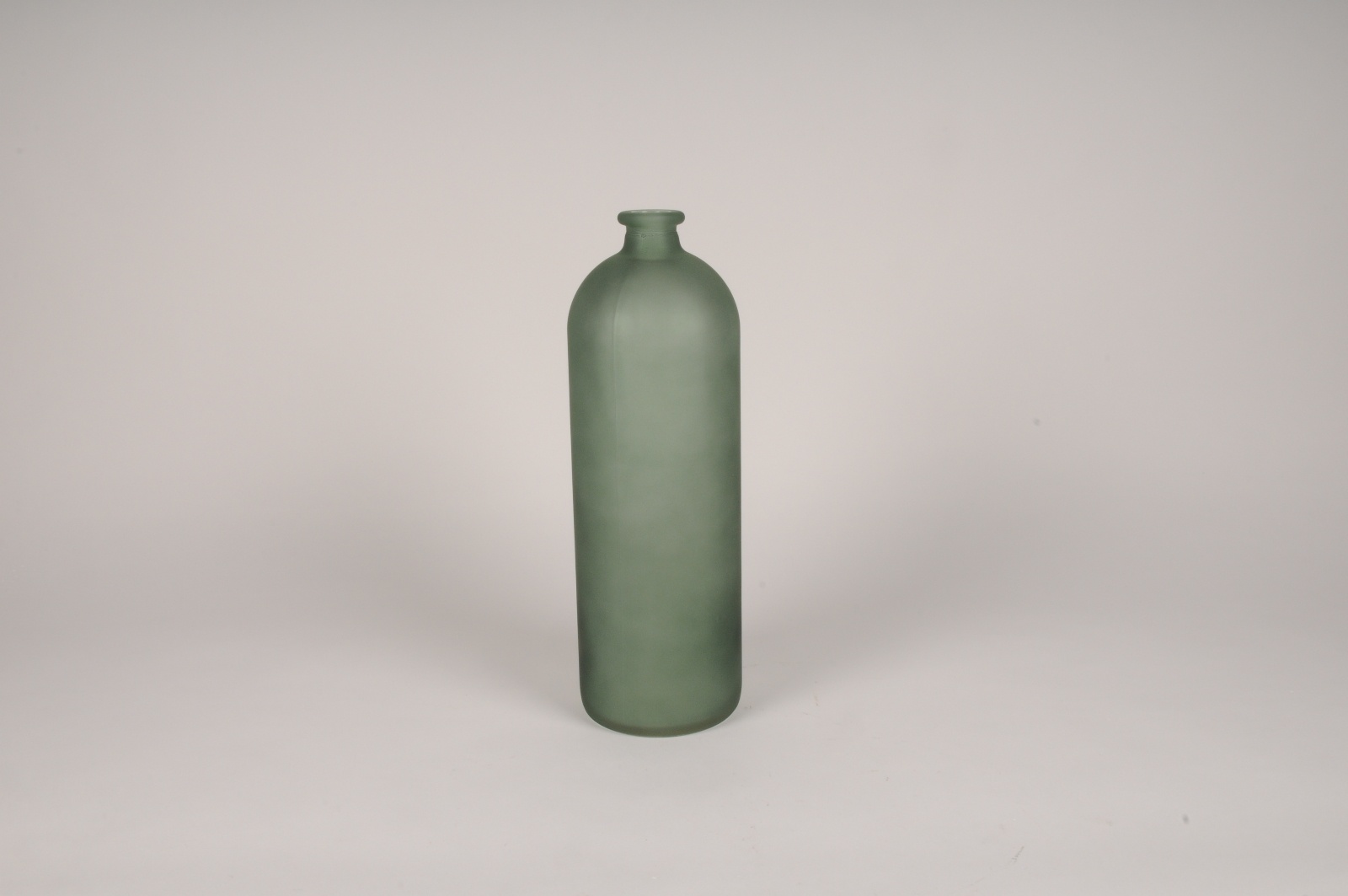 Vase bouteille en verre givré vert effet mat diamètre 13cm hauteur 41cm