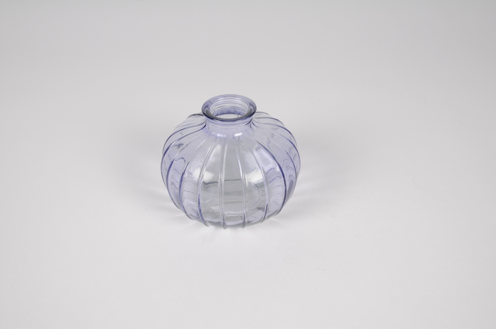 Vase bouteille en verre strié violet lavande diamètre 10.5cm hauteur 8.5cm
