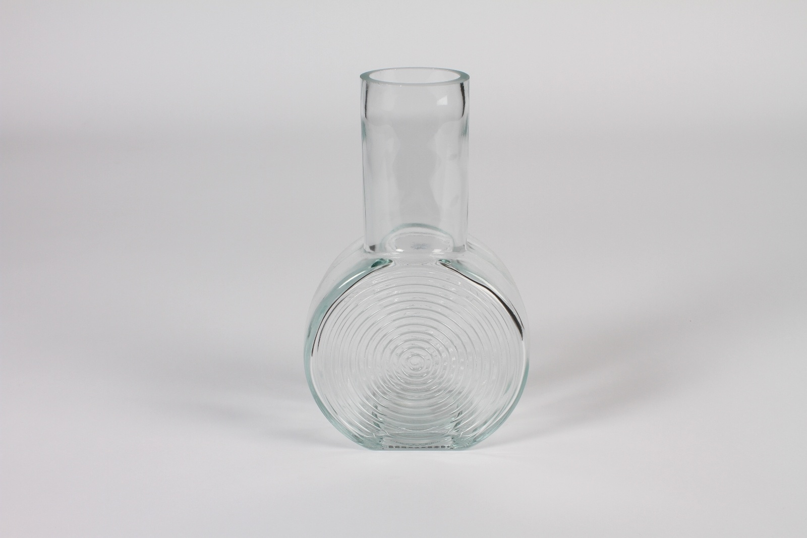Vase bouteille en verre épais transparent motif spiral longueur 13.5cm largeur 7cm hauteur 22.5cm
