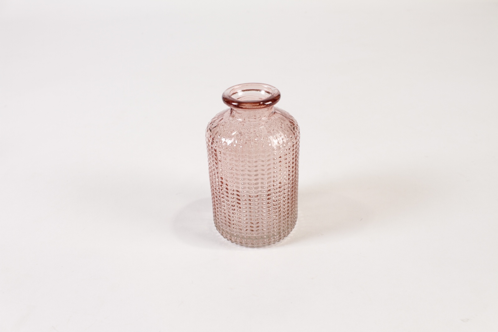 Vase bouteille en verre rose avec motif diamètre 6cm hauteur 10cm