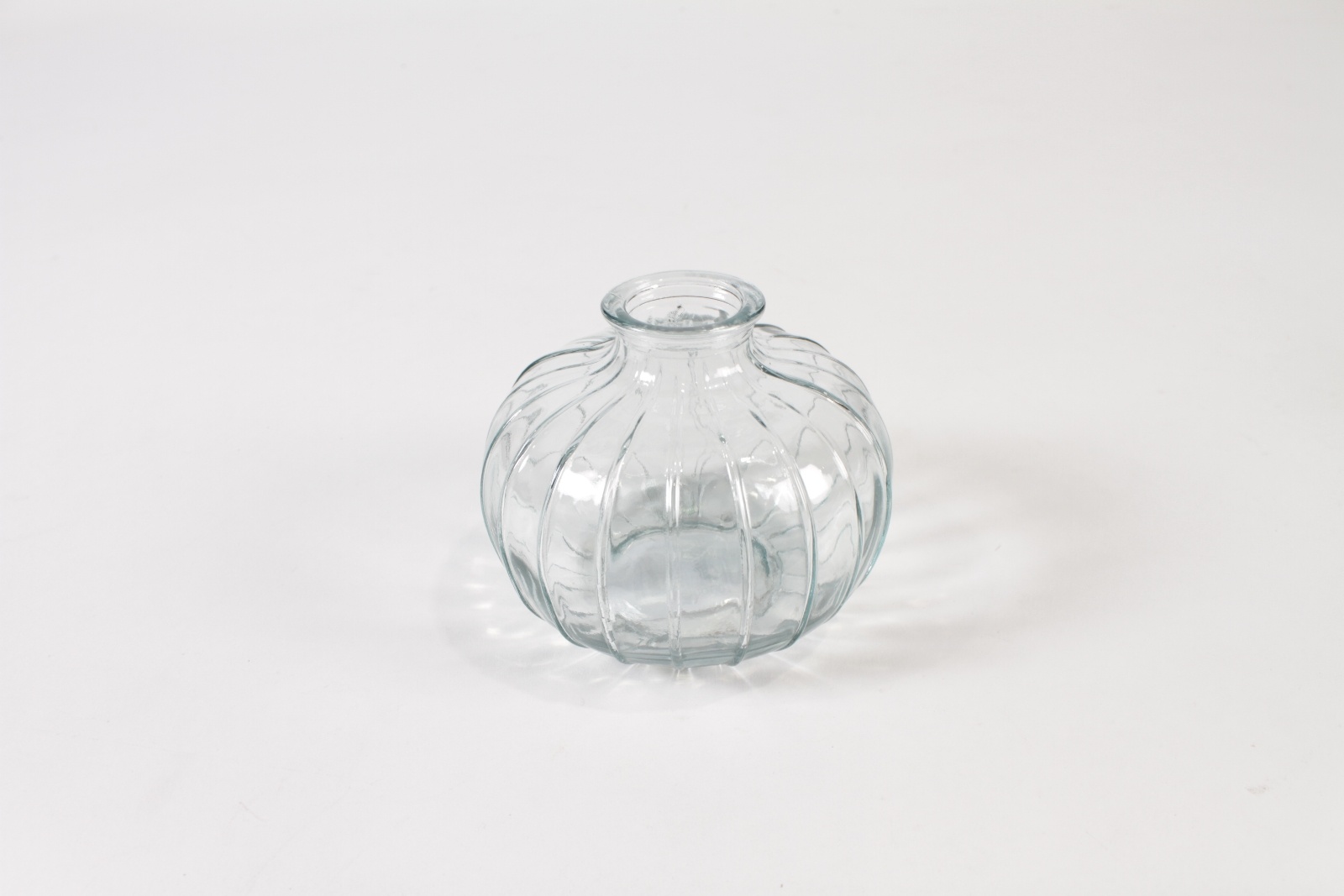 Vase bouteille boule en verre strié transparent diamètre 10.5cm hauteur 8.5cm