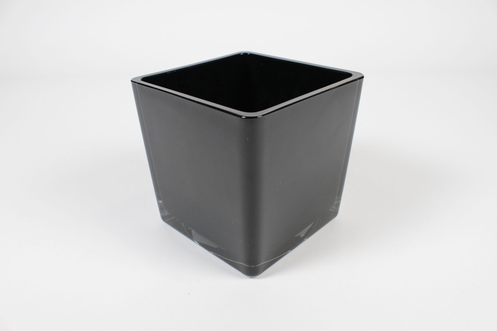 Vase cube en verre noir longueur 14cm largeur 14cm hauteur 14cm