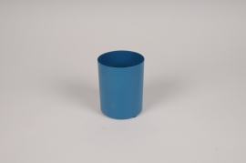 Vase cylindrique en métal bleu diamètre 8cm hauteur 10cm
