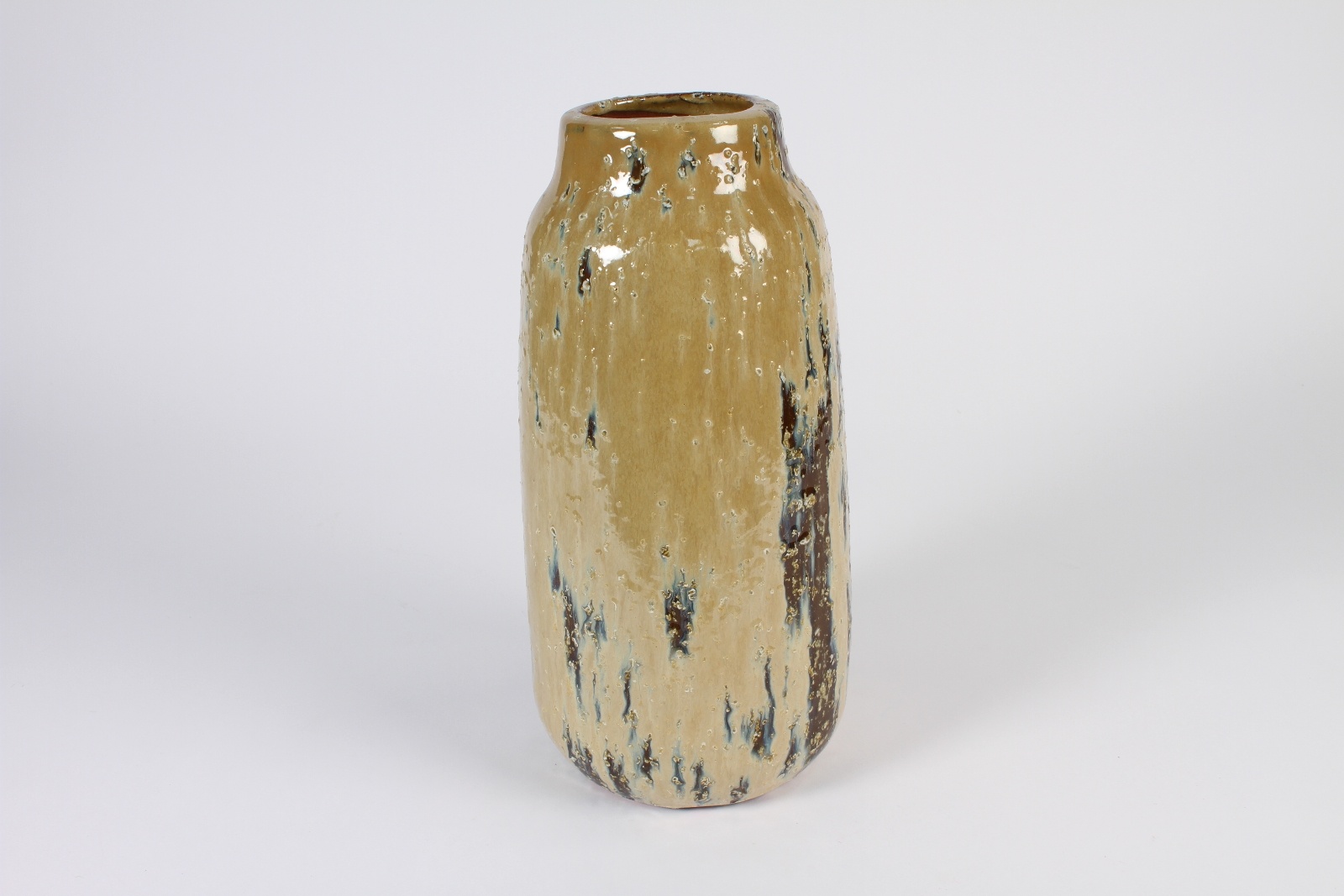 Vase en céramique émaillée beige et marron antique diamètre 15.5cm hauteur 34.5cm