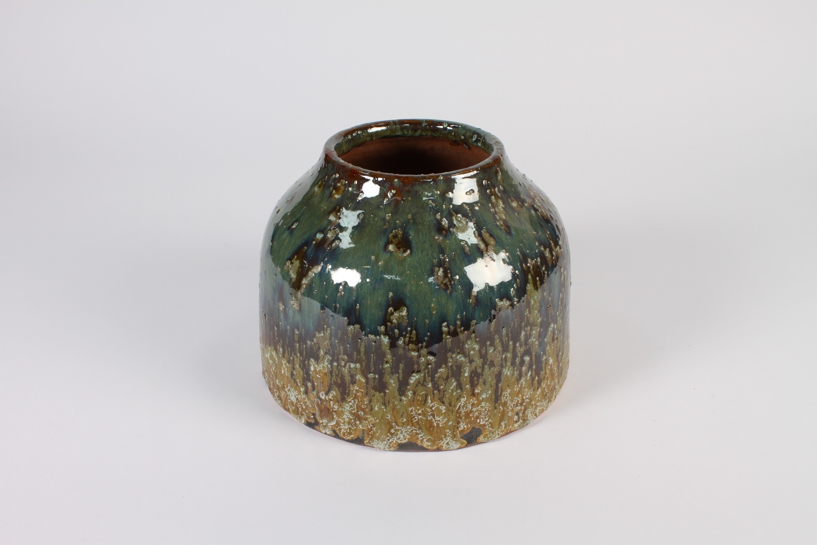 Vase en céramique émaillée vert et marron antique diamètre 24cm hauteur 19.5cm
