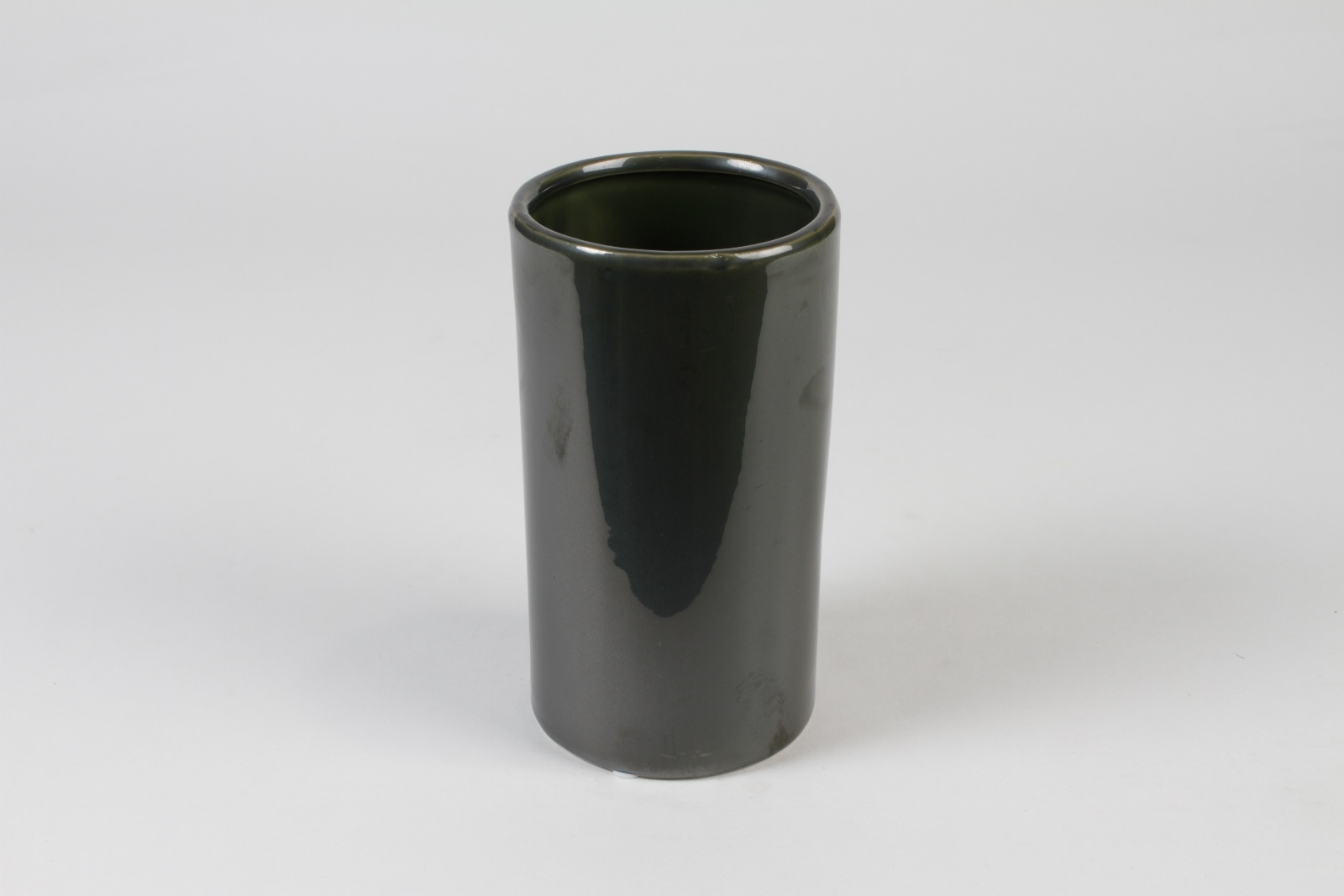 Vase en céramique émaillée vert olive diamètre 10cm hauteur 18cm