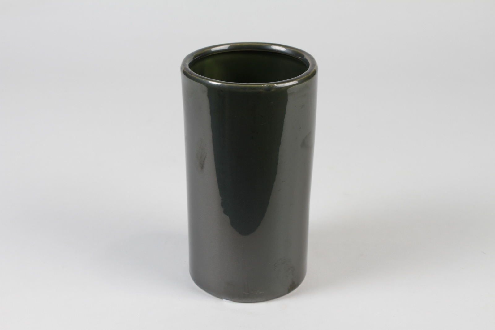Vase en céramique émaillée vert olive diamètre 12cm hauteur 23cm