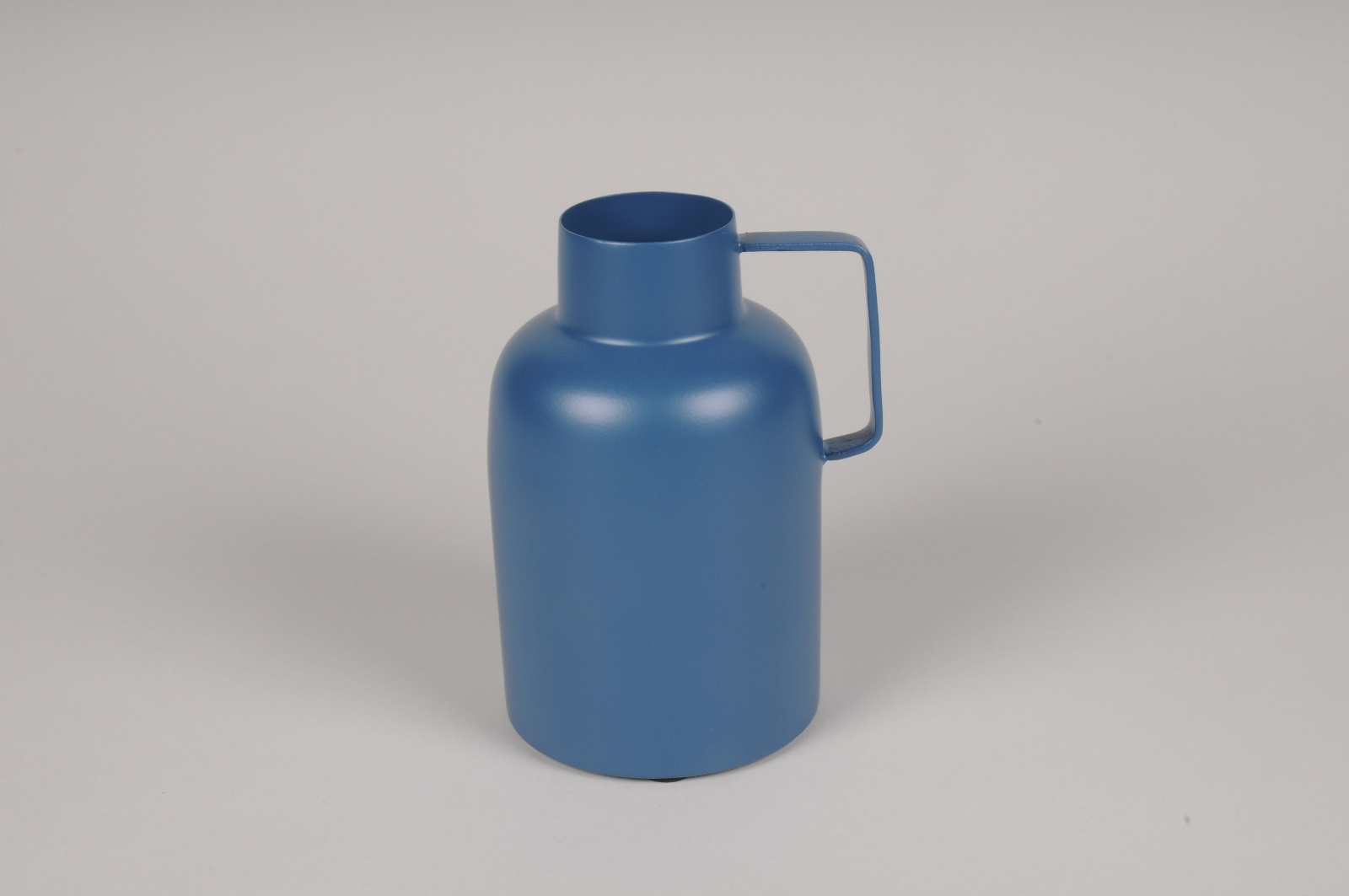 Vase en métal design façon pichet ou pot à lait bleu diamètre 10cm hauteur 16cm