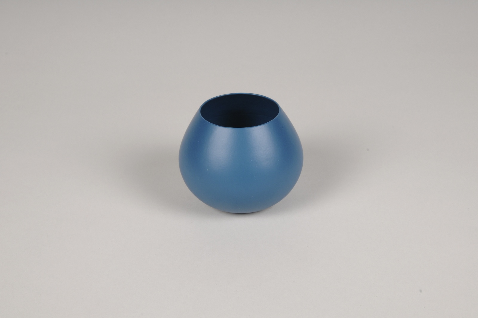 Vase en métal bleu arrondi au design contemporain diamètre 9cm hauteur 7cm