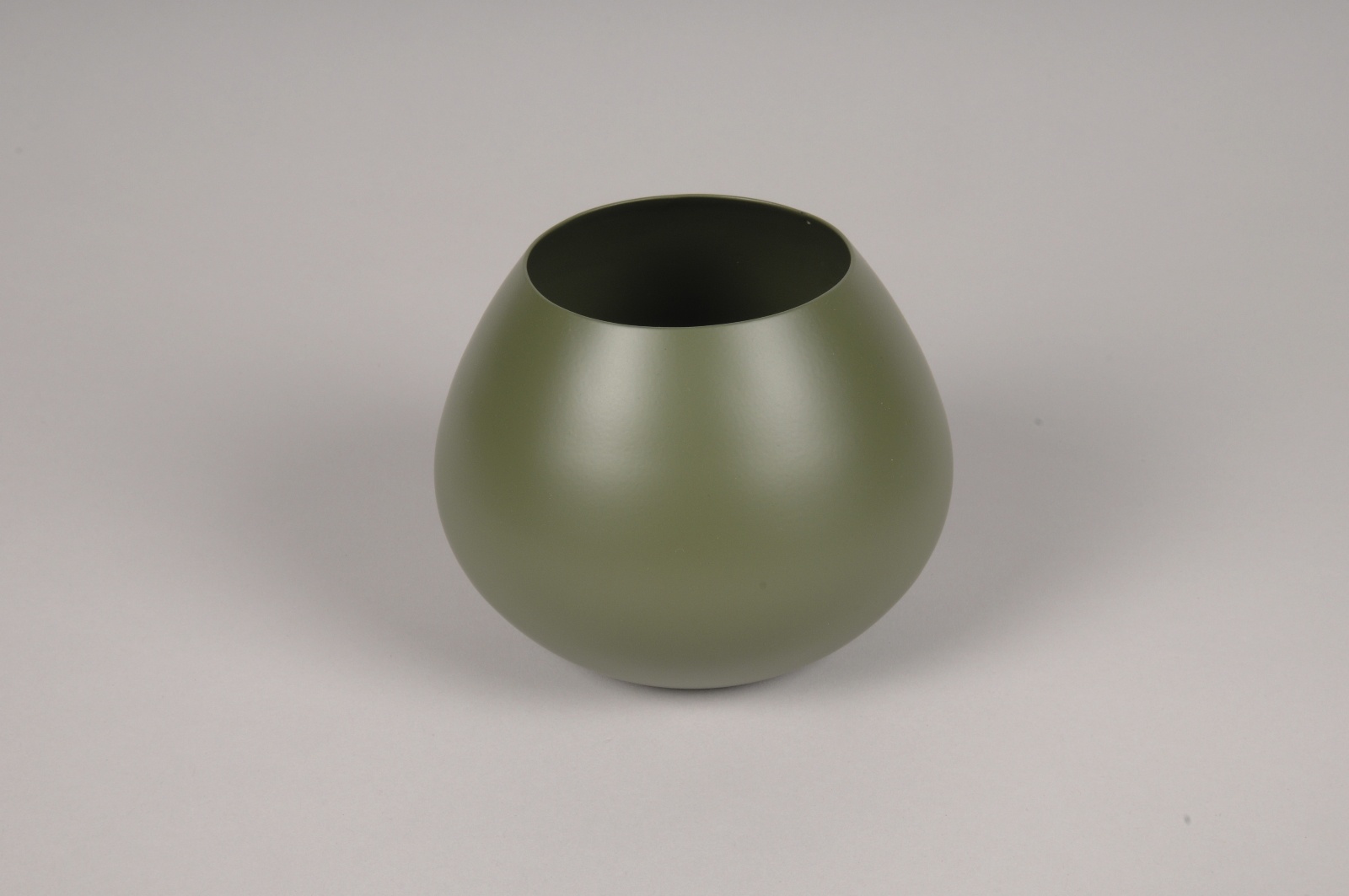 Vase en métal vert kaki arrondi au design contemporain diamètre 13cm hauteur 10.5cm