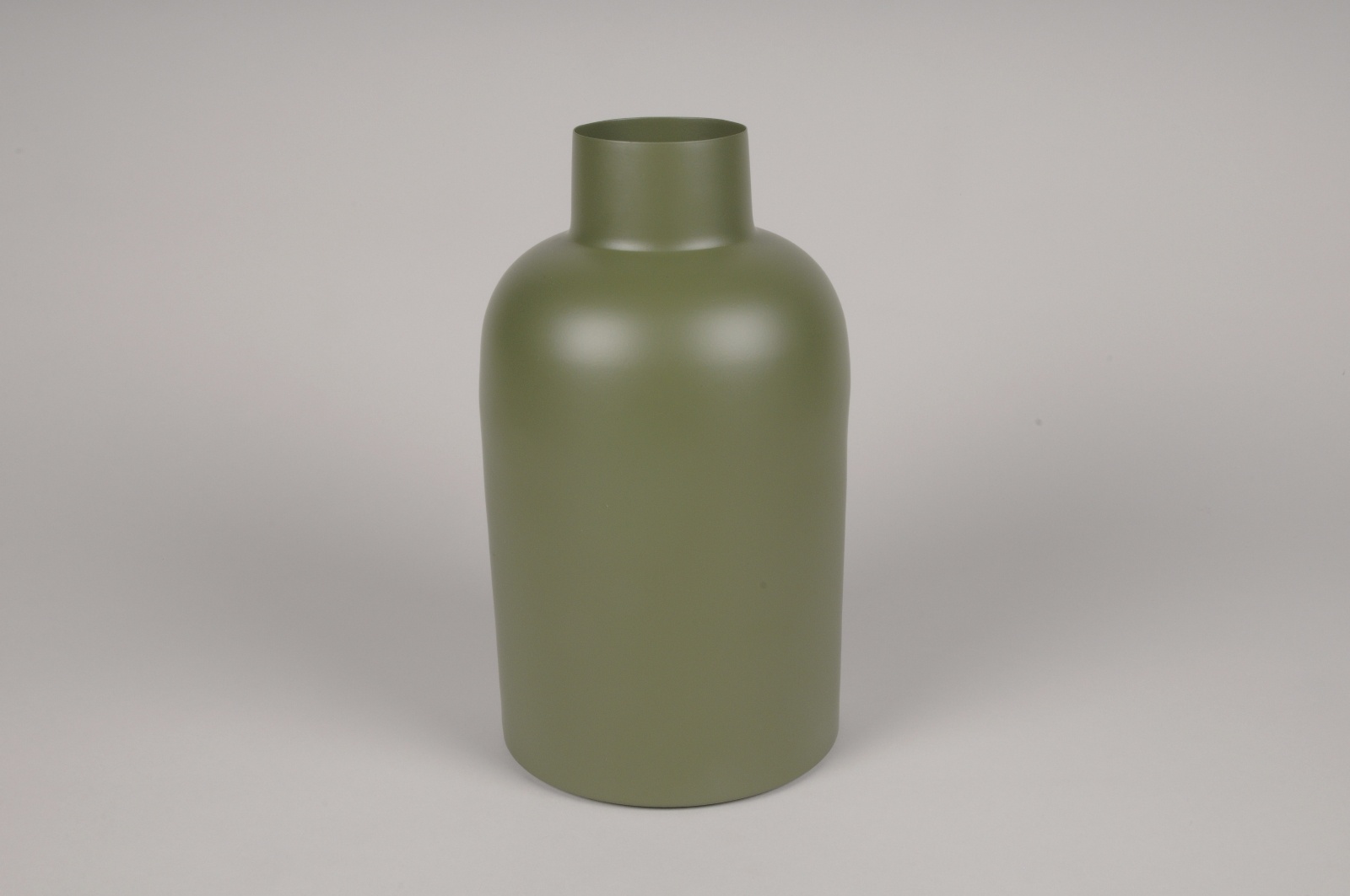 Vase en métal vert kaki au design contemporain diamètre 14.5cm hauteur 26cm