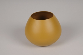 Vase en métal jaune moutarde arrondi au design contemporain diamètre 13cm hauteur 10.5cm