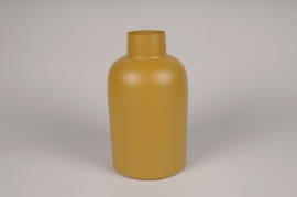 Vase en métal jaune moutarde au design contemporain diamètre 14.5cm hauteur 26cm
