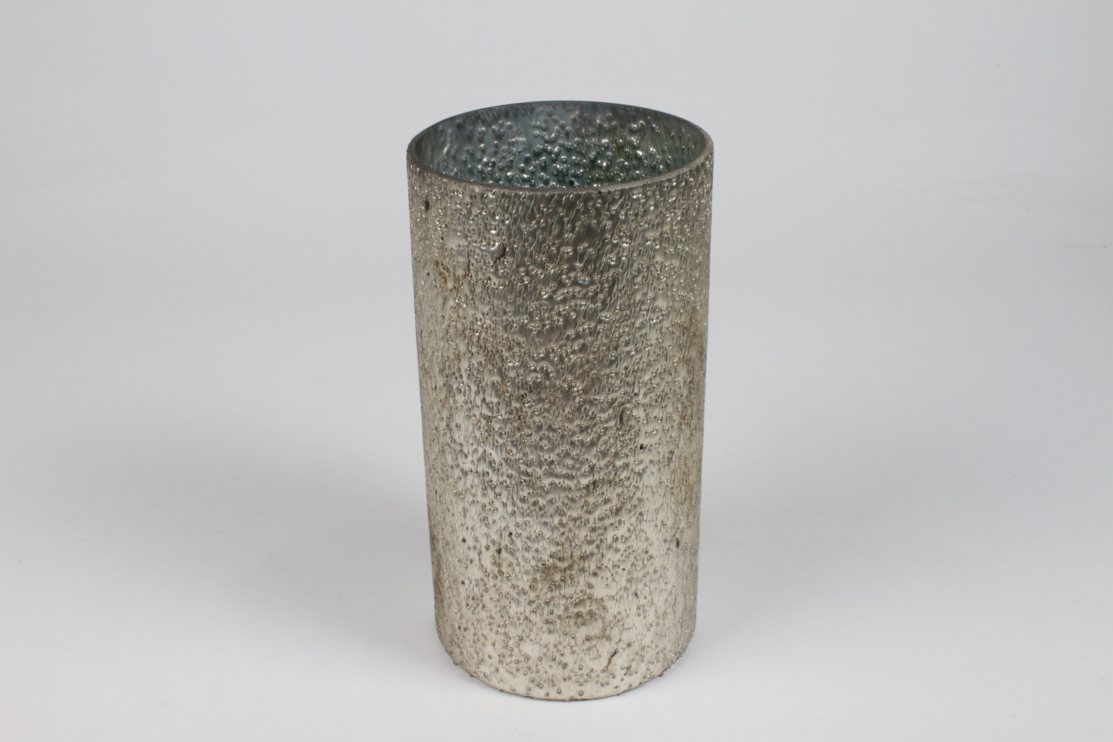 Vase cylindre en verre argent diamètre 13cm hauteur 25cm