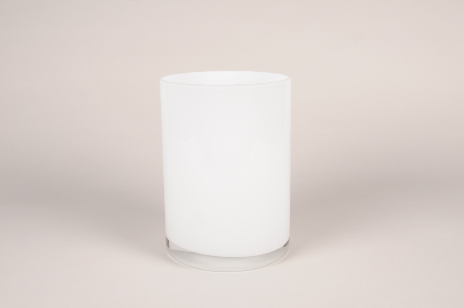 Vase en verre cylindrique blanc diamètre 20cm hauteur 30cm