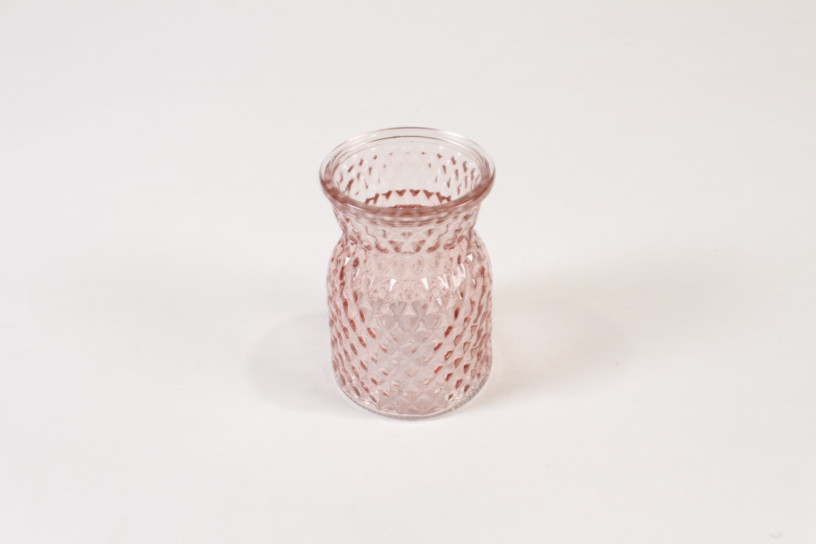 Vase en verre rose avec motif diamant diamètre 7.5cm hauteur 10.5cm