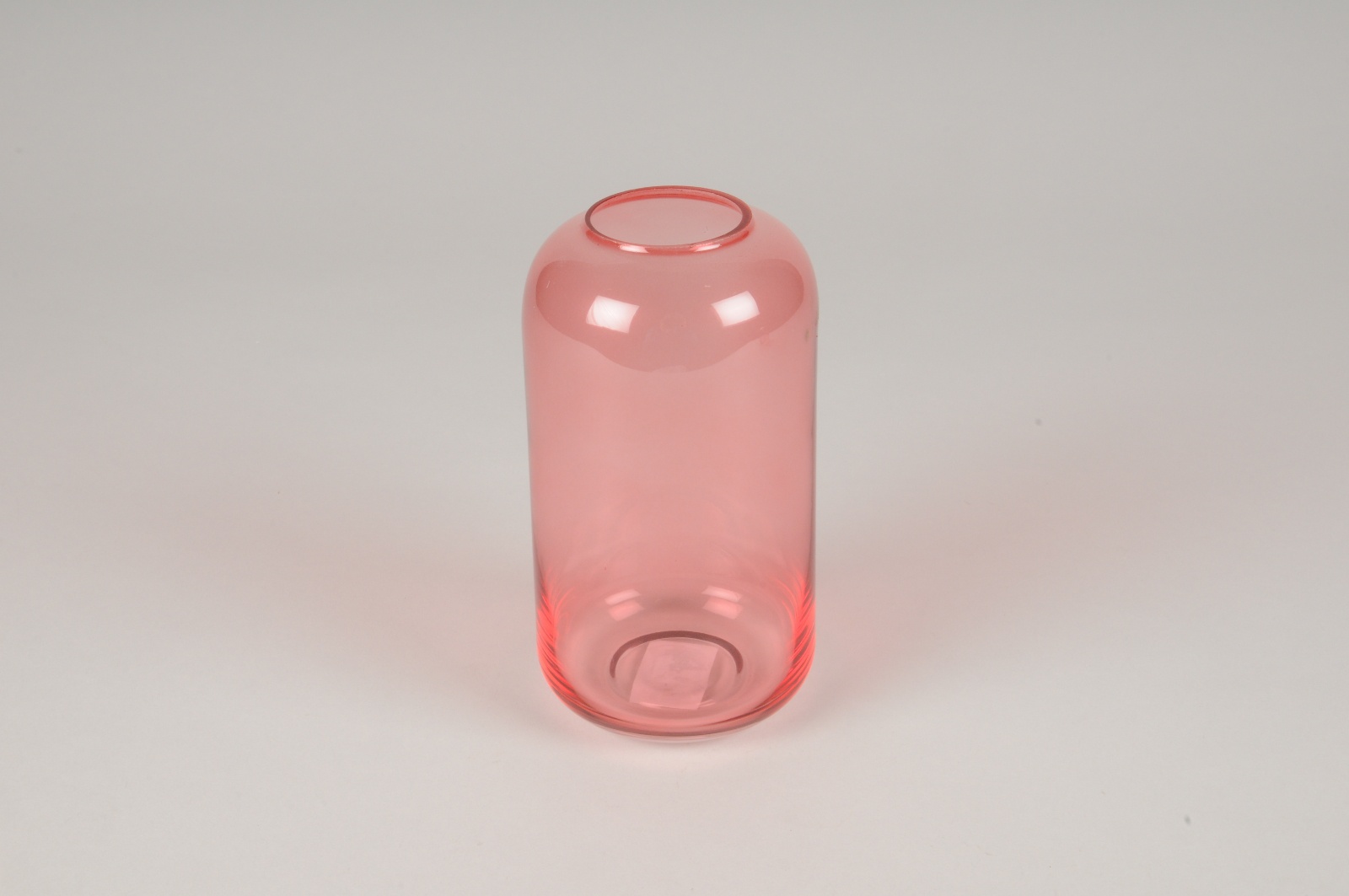 Vase en verre rose diamètre 8cm hauteur 15cm