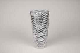 Vase en verre évasé argent métallisé à motif diamant diamètre 14cm hauteur 27cm