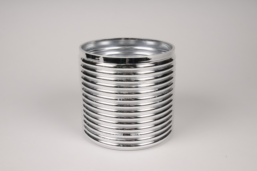 Vase en verre cylindre argent métallisé strié diamètre 16cm hauteur 15cm