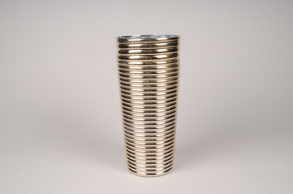 Vase en verre évasé or métallisé strié diamètre 14cm hauteur 30cm