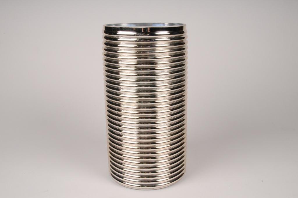 Vase en verre cylindre or métallisé strié diamètre 16cm hauteur 31cm