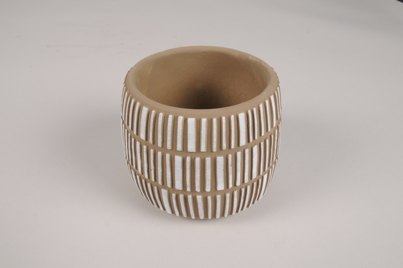 White and beige concrete planter diameter 18cm height 14.5cmInside diameter 15cmBase diameter 14cm