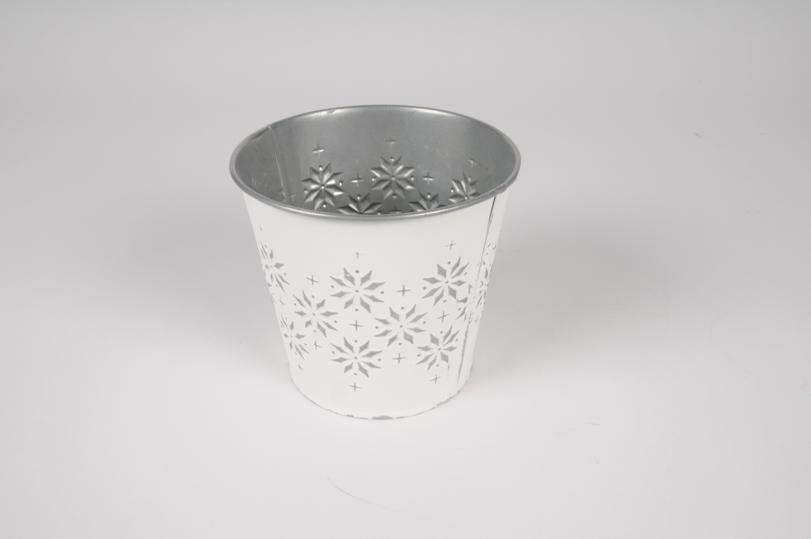White zinc planter with silver snowflakes patterns diameter 13.5cm height 12cmBase diameter 10cm