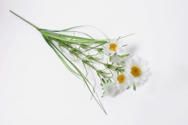 White artificial daisy pick with of 3 flowers and 3 inflorescences height 88cm