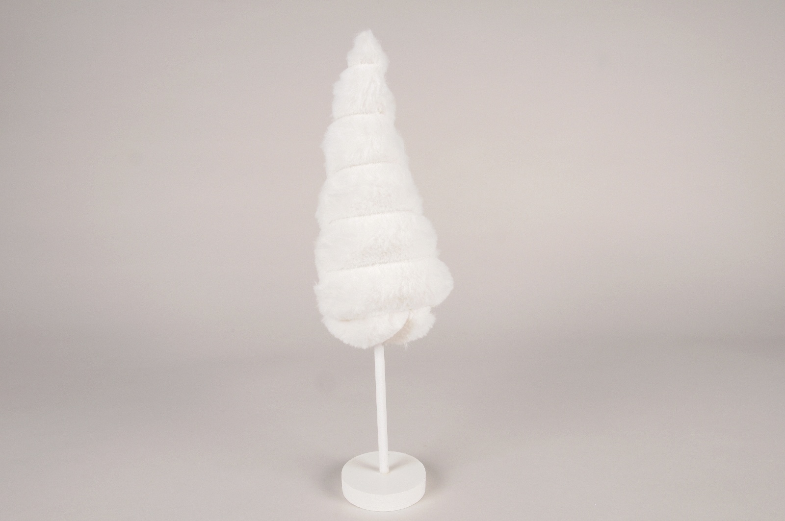 White faux fur chrismas tree spiral effect on wooden stand height 37cmWidth 10cmSize stand 7cm
