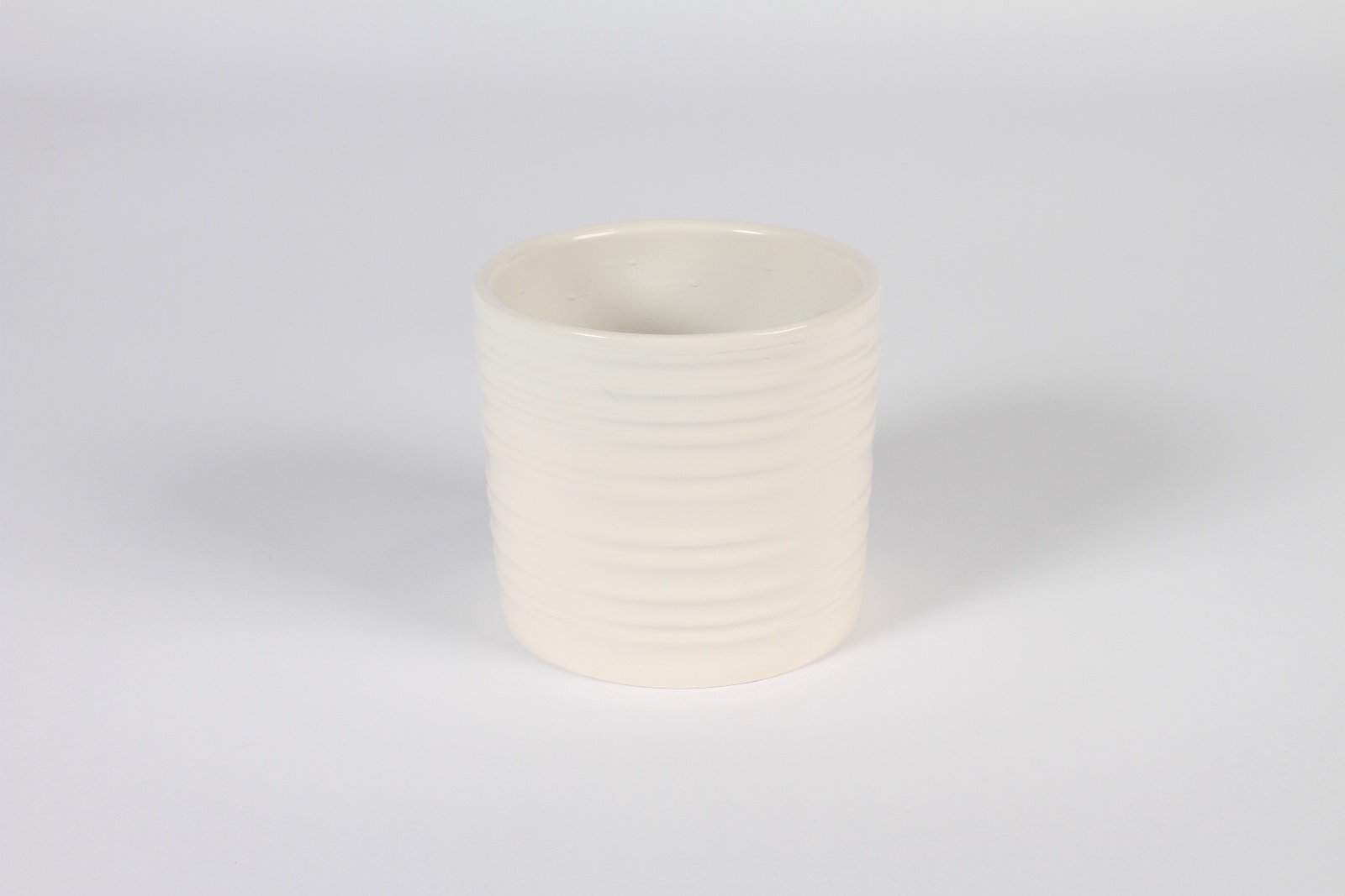 Cream white striated ceramic planter diameter 12.5cm height 11cmInside diameter 11cm