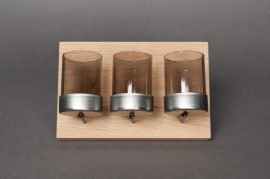 Wooden support with 3 glass candles jar L15cm