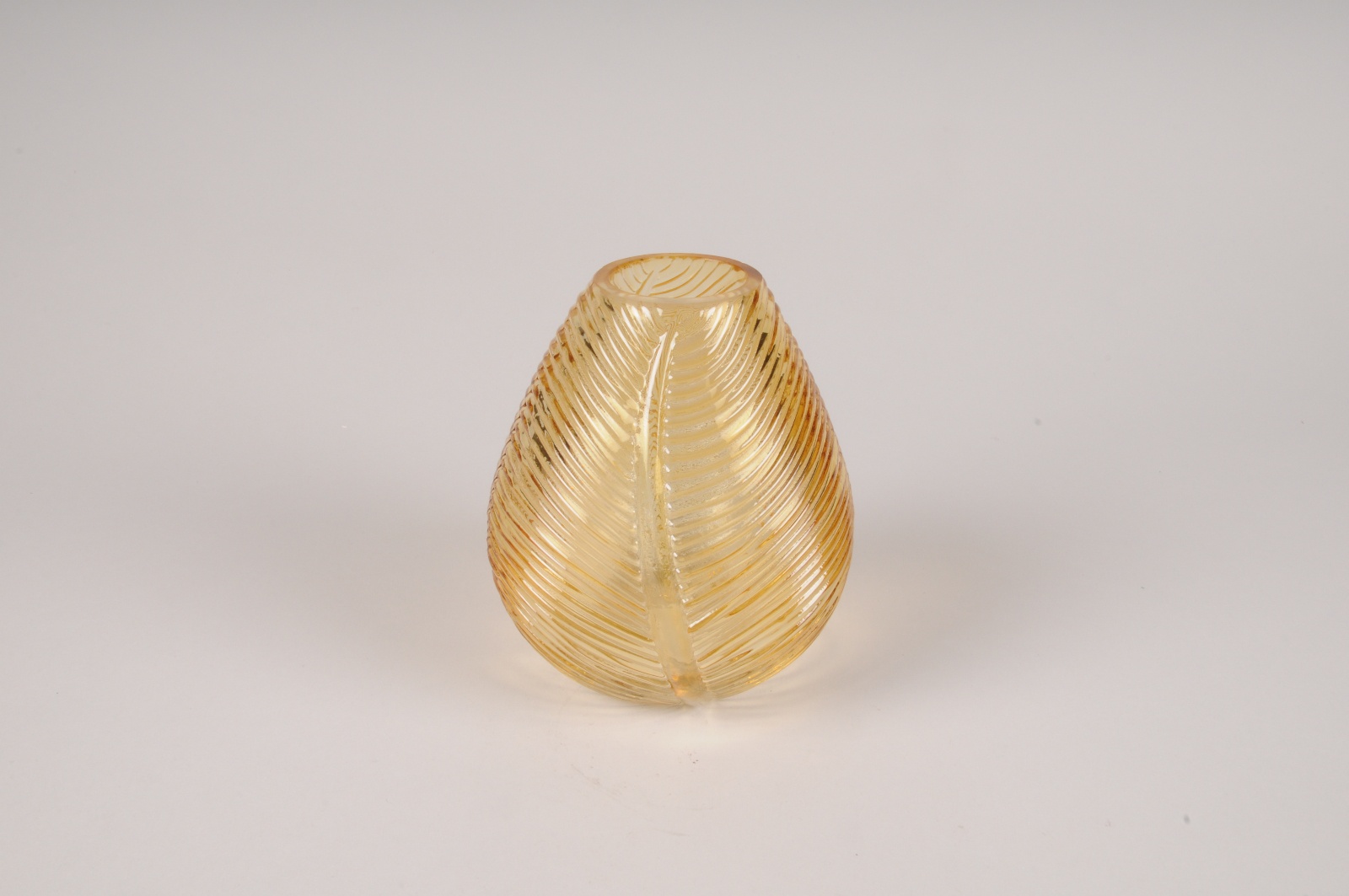 Yellow striated vintage glass vase diameter 12.5cm height 14.5cmOpening diameter 4.5cmBase diameter 6.5cm