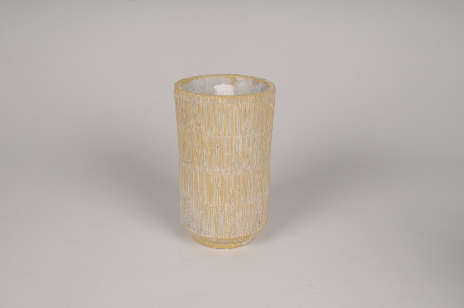 Yellow striated concrete vase D12cm H20cm